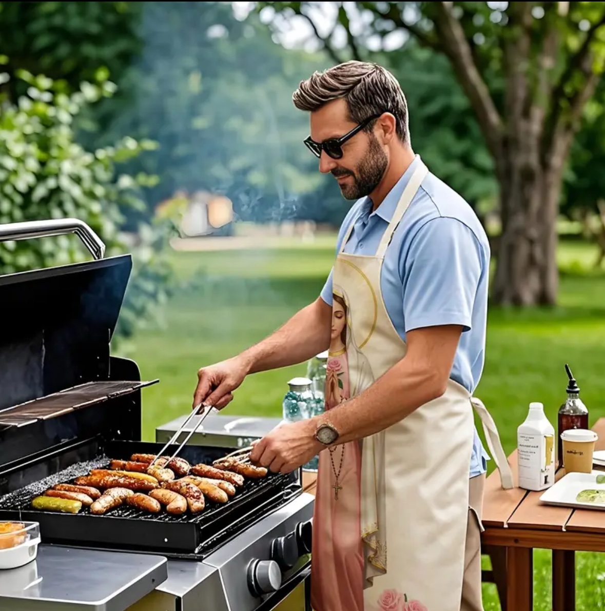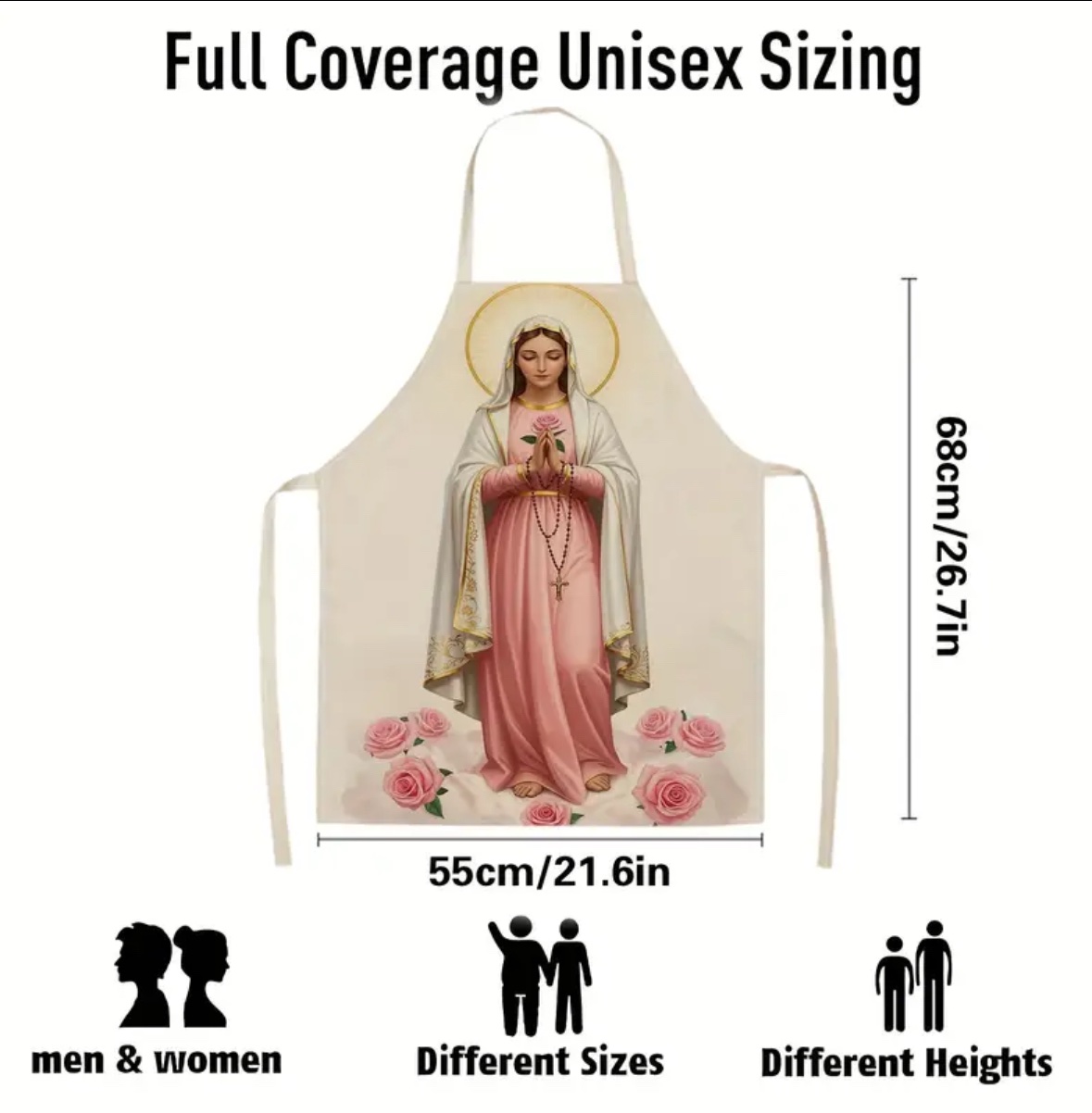 Delantal de cocina, con estampado de la Virgen María Rosa Mística